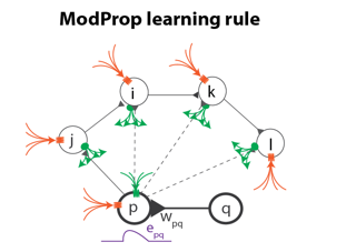 I will describe a training algorithm for deep neural networks that does not require the neurons to propagate derivatives or remember neural activities. The algorithm can learn multi-level representations of streaming sensory data on the fly without interrupting the processing of the input stream. The algorithm scales much better than reinforcement learning and would be much easier to implement in cortex than backpropagation.