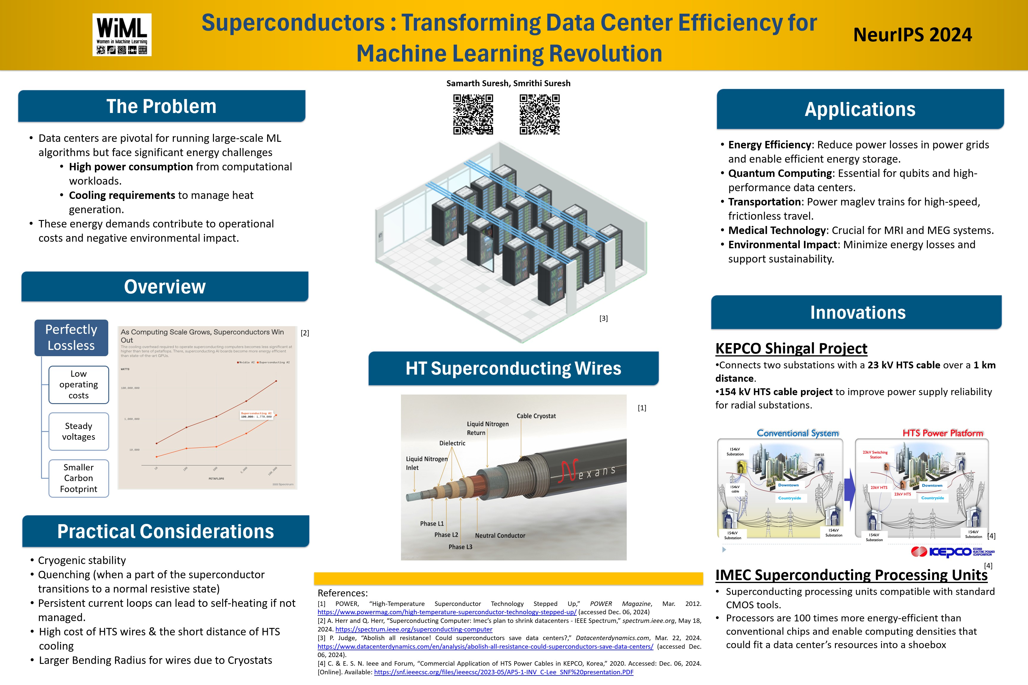 Enhancing Data Center Efficiency for Machine Learning: The Role of Superconductors and Insights from Superconducting Power Grid Projects