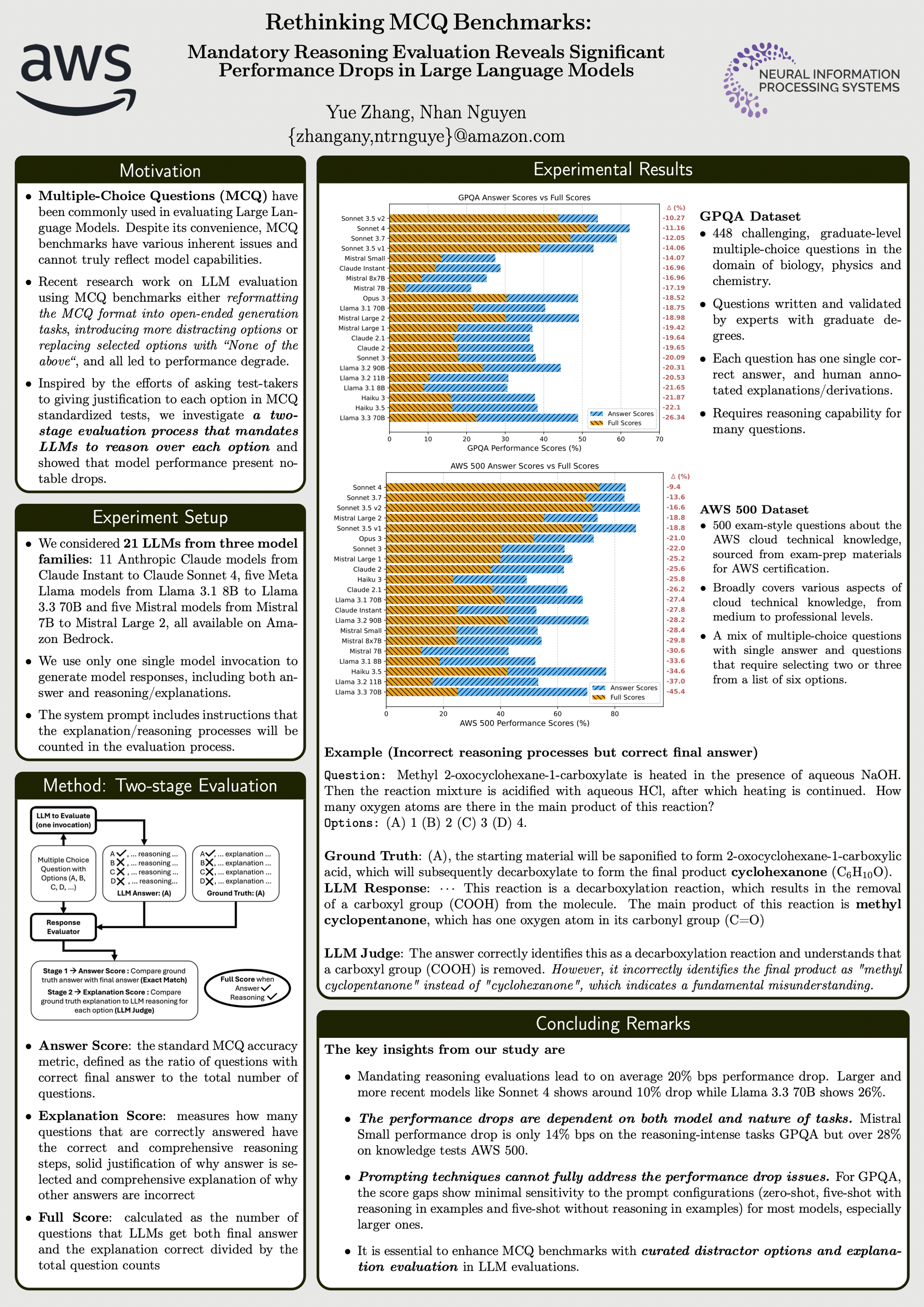 Rigorous evaluation of Large Language Models (LLMs) is critical for their adoption in high-stakes applications, particularly in highly technical domains that require deep expertise and specialized training. The proliferation of LLMs from various providers further underscores the need for comprehensive model performance benchmarking. Like many standardized tests and certification exams, several prominent LLM benchmark datasets employ the Multiple Choice Questions (MCQs) format, such as GPQA and MMLU. Despite its convenience, prior research has demonstrated that MCQs oversimplify assessment and may not accurately reflect true model capabilities. Traditional MCQ evaluation only assesses whether the final answer is correct, potentially allowing models to succeed through lucky guessing or flawed reasoning. In the current work, we designed and performed a two-stage evaluation framework that mandates LLMs not only select the correct answer but also provide reasoning or derivation processes and justification for each options. We evaluated 21 LLMs across three model families on two datasets: GPQA and a custom dataset of 500 AWS-related questions curated from public online materials. Our results show that LLMs consistently struggle when both answer accuracy and reasoning quality are required, with performance scores dropping significantly across all models by 10\% to 45\% absolute points compared to conventional final answer-only evaluation. Based on these findings, we recommend that all MCQ benchmarks incorporate explanation evaluation as a standard component.