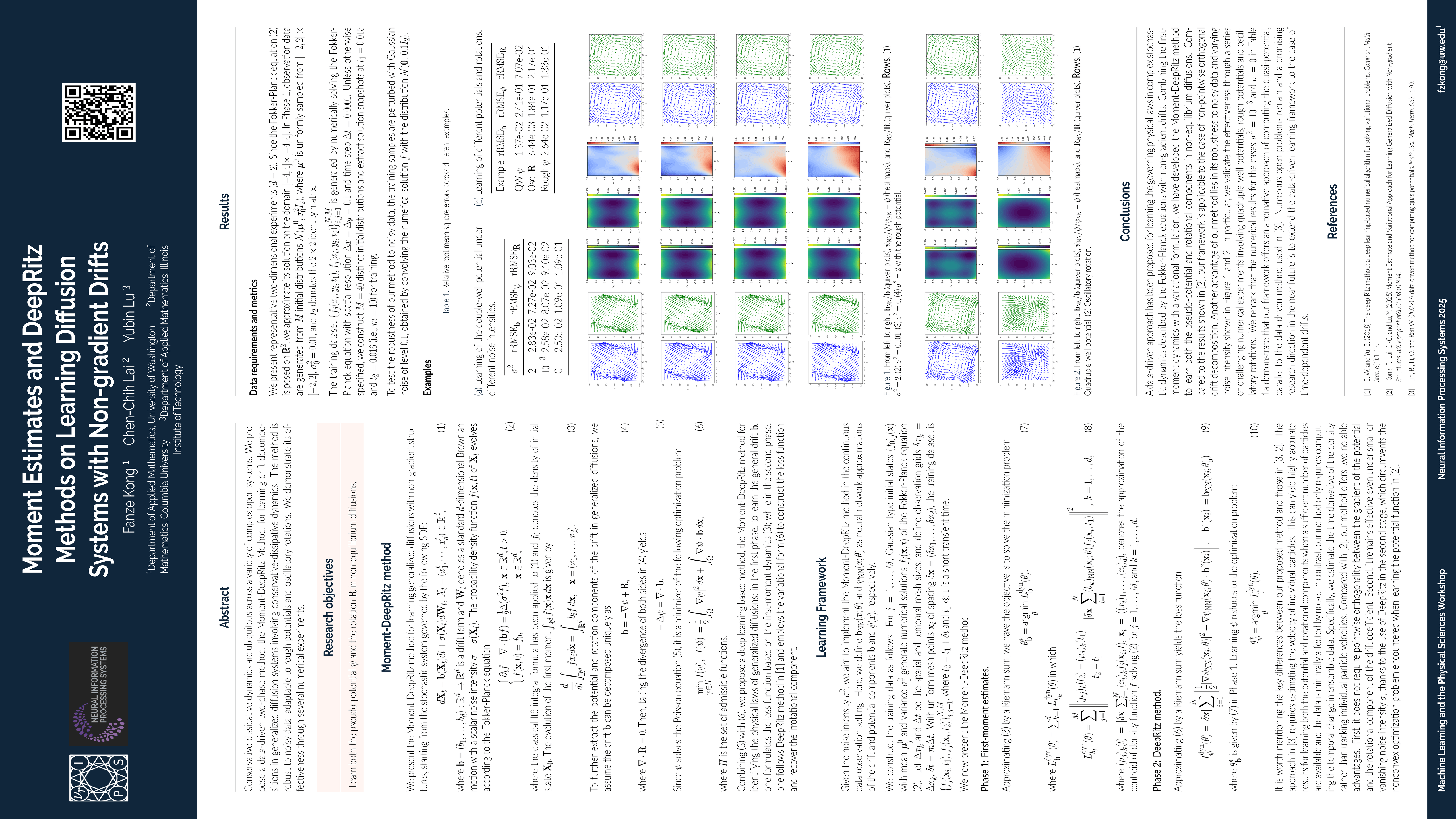 Conservative-dissipative dynamics are ubiquitous across a variety of complex open systems. We propose a data-driven two-phase method, the Moment-DeepRitz Method, for learning drift decompositions in generalized diffusion systems involving conservative-dissipative dynamics. The method is robust to noisy data, adaptable to rough potentials and oscillatory rotations. We demonstrate its effectiveness through several numerical experiments.