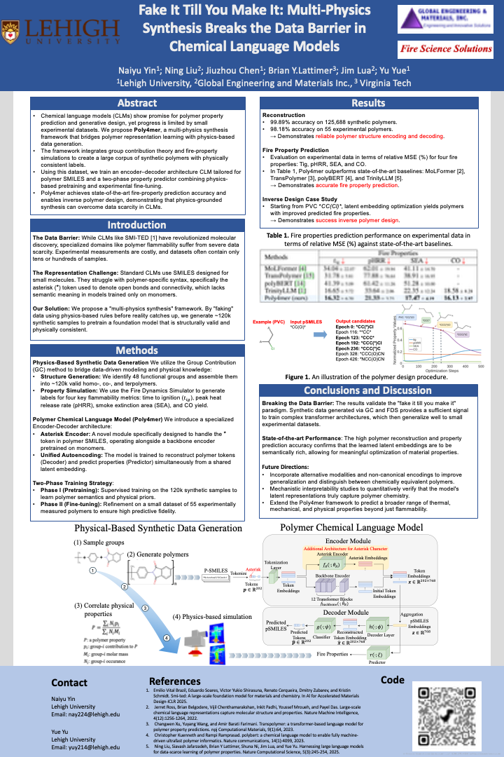 Chemical language models (CLMs) promise transformative capabilities in polymer property prediction and design, yet their potential is hindered by the scarcity of experimental data. We present Poly4mer, a novel multi-physics synthesis based CLM framework that units neural polymer representation learning with theoretical foundations in physics. Poly4mer integrates a comprehensive group contribution method for hypothetical polymer generation with physics-based simulations that faithfully emulate experimental protocols, fabricating a rich dataset of synthetic polymer structures and structure–property relationships to establish strong priors for CLM training. This synthetic data enables training of two critical components: an encoder-decoder architecture that captures polymer semantics, and a two-phase property prediction strategy comprising supervised pretraining on synthetic data for physically consistent alignment followed by fine-tuning on experimental measurements to enhance predictive accuracy. We then architect an autoencoding system that couples predictive capability with latent decoding, enabling inverse design of polymers optimized for downstream applications through latent space exploration and structure reconstruction. By faking data with physics before reality catches up, we demonstrate that multi-physics synthesis can break the data barrier in CLMs, establishing a new paradigm for physics-grounded neural polymer discovery.
