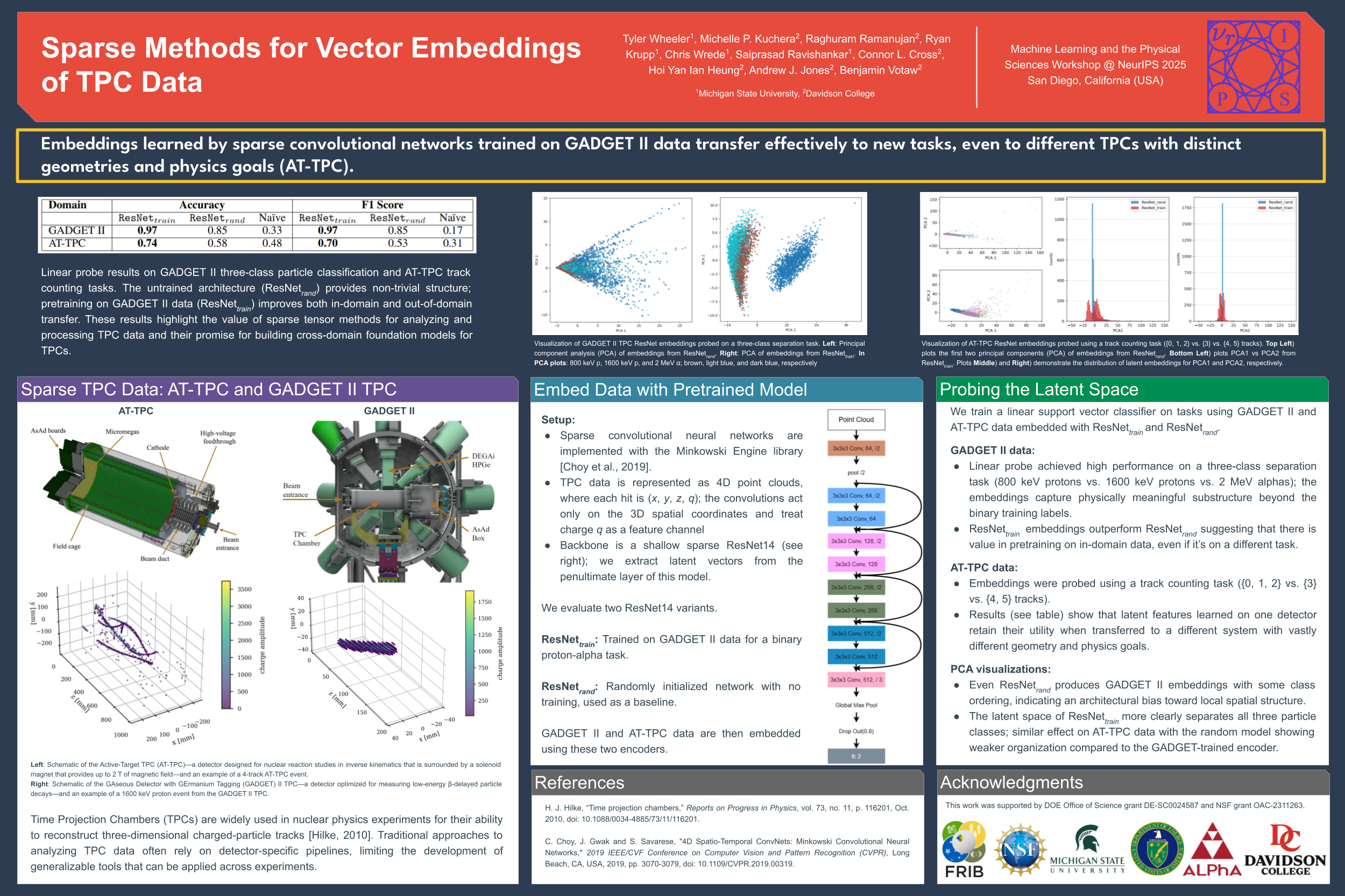 Time Projection Chambers (TPCs) are versatile detectors that reconstruct charged-particle tracks in an ionizing medium, enabling sensitive measurements across a wide range of nuclear physics experiments. We explore sparse convolutional networks for representation learning on TPC data, finding that a sparse ResNet architecture, even with randomly set weights, provides useful structured vector embeddings of events. Pre-training this architecture on a simple physics-motivated binary classification task further improves the embedding quality. Using data from the GAseous Detector with GErmanium Tagging (GADGET) II TPC, a detector optimized for measuring low-energy $\beta$-delayed particle decays, we represent raw pad-level signals as sparse tensors, train Minkowski Engine ResNet models, and probe the resulting event-level embeddings which reveal rich event structure. As a cross-detector test, we embed data from the Active-Target TPC (AT-TPC)---a detector designed for nuclear reaction studies in inverse kinematics---using the same encoder. We find that even an untrained sparse ResNet model provides useful embeddings of AT-TPC data, and we observe improvements when the model is trained on GADGET data. Together, these results highlight the potential of sparse convolutional techniques as a general tool for representation learning in diverse TPC experiments.