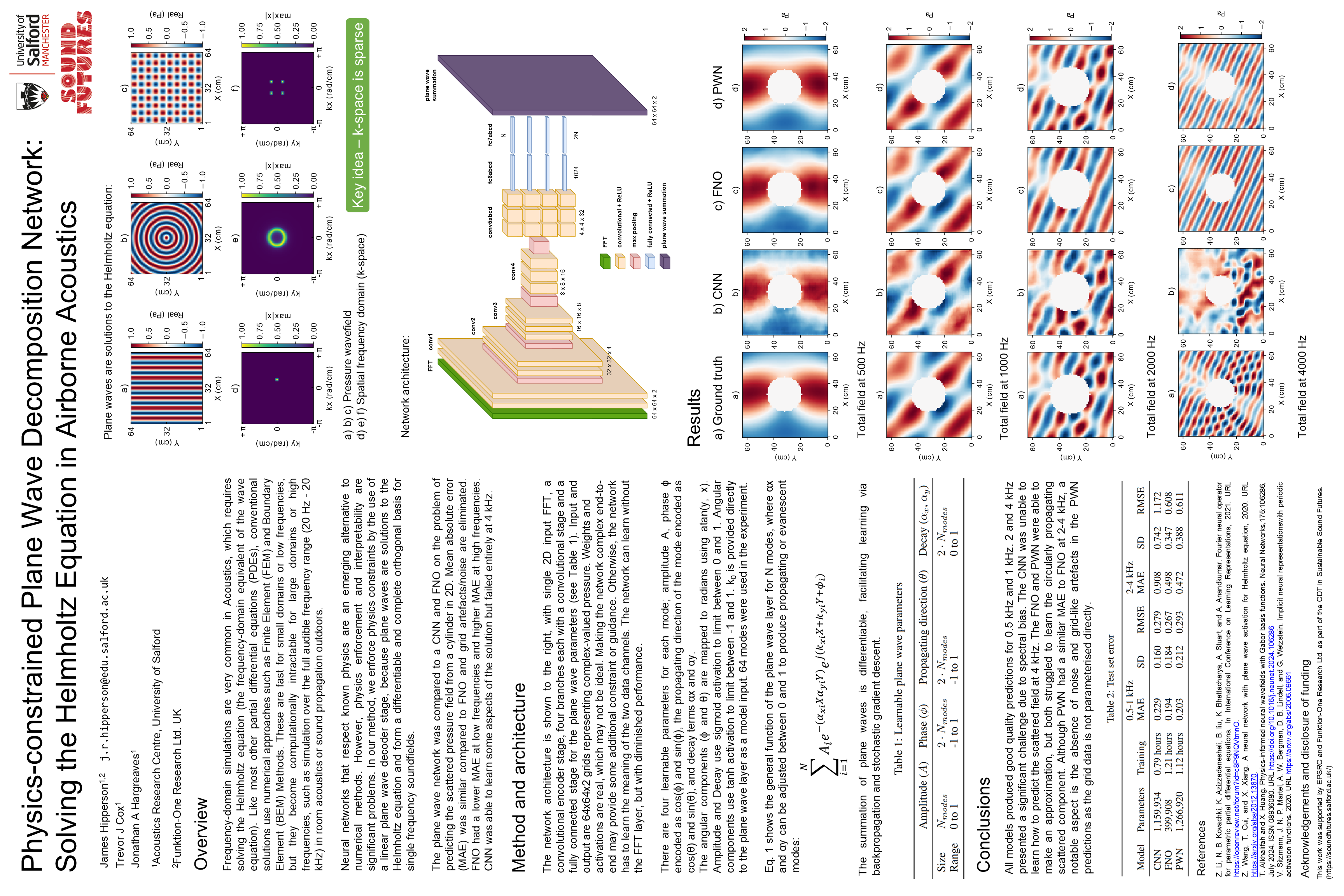 Frequency-domain simulations are very common in Acoustics, which requires solving the Helmholtz equation (the frequency-domain equivalent of the wave equation). Like most other partial differential equations (PDEs), conventional solutions use numerical approaches such as Finite Element (FEM) and Boundary Element (BEM) Methods. These are fast for small domains or low frequencies, but they become computationally intractable for large domains or high frequencies, such as simulation over the full audible frequency range (20 Hz - 20 kHz) in room acoustics or sound propagation outdoors. Neural networks that respect known physics are an emerging alternative to numerical methods. However, physics enforcement and interpretability are significant problems. In our method, we enforce physics constraints by the use of a linear plane wave decoder stage, because plane waves are solutions to the Helmholtz equation and form a differentiable and complete orthogonal basis for single frequency soundfields. The plane wave network was compared to a CNN and FNO on the problem of predicting the scattered field from a cylinder. Mean absolute error (MAE) was reduced at high frequencies compared to FNO and grid artefacts/noise are eliminated. However, FNO had a lower MAE at low frequencies. CNN was able to learn some aspects of the solution, but failed entirely at 4 kHz.