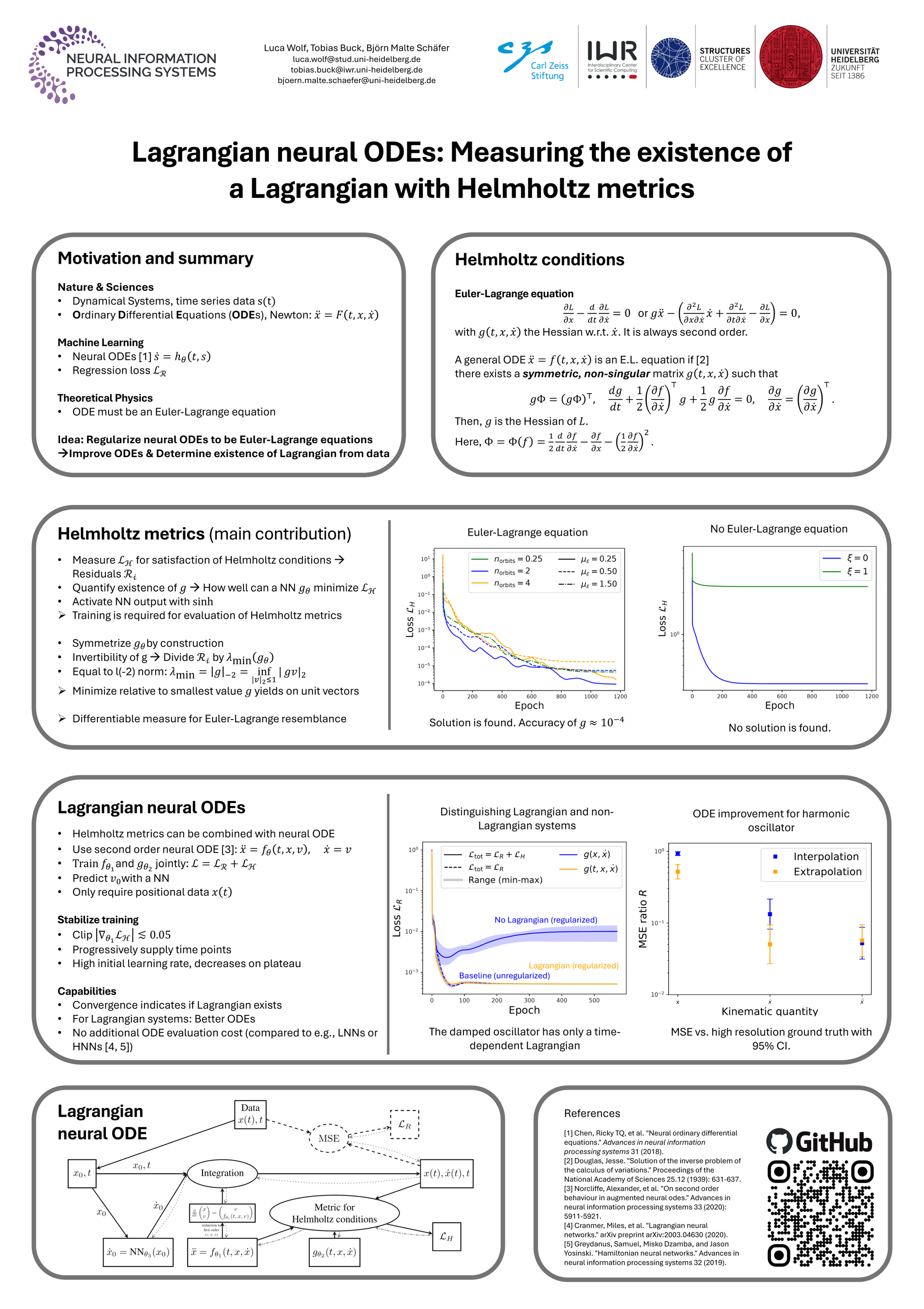 Neural ODEs are a widely used, powerful machine learning technique in particular for physics. However, not every solution is physical in that it is an Euler-Lagrange equation. We present Helmholtz metrics to quantify this resemblance for a given ODE and demonstrate their capabilities on several fundamental systems with noise. We combine them with a second order neural ODE to form a Lagrangian neural ODE, which allows to learn Euler-Lagrange equations in a direct fashion and with zero additional inference cost. We demonstrate that, using only positional data, they can distinguish Lagrangian and non-Lagrangian systems and improve the neural ODE solutions.