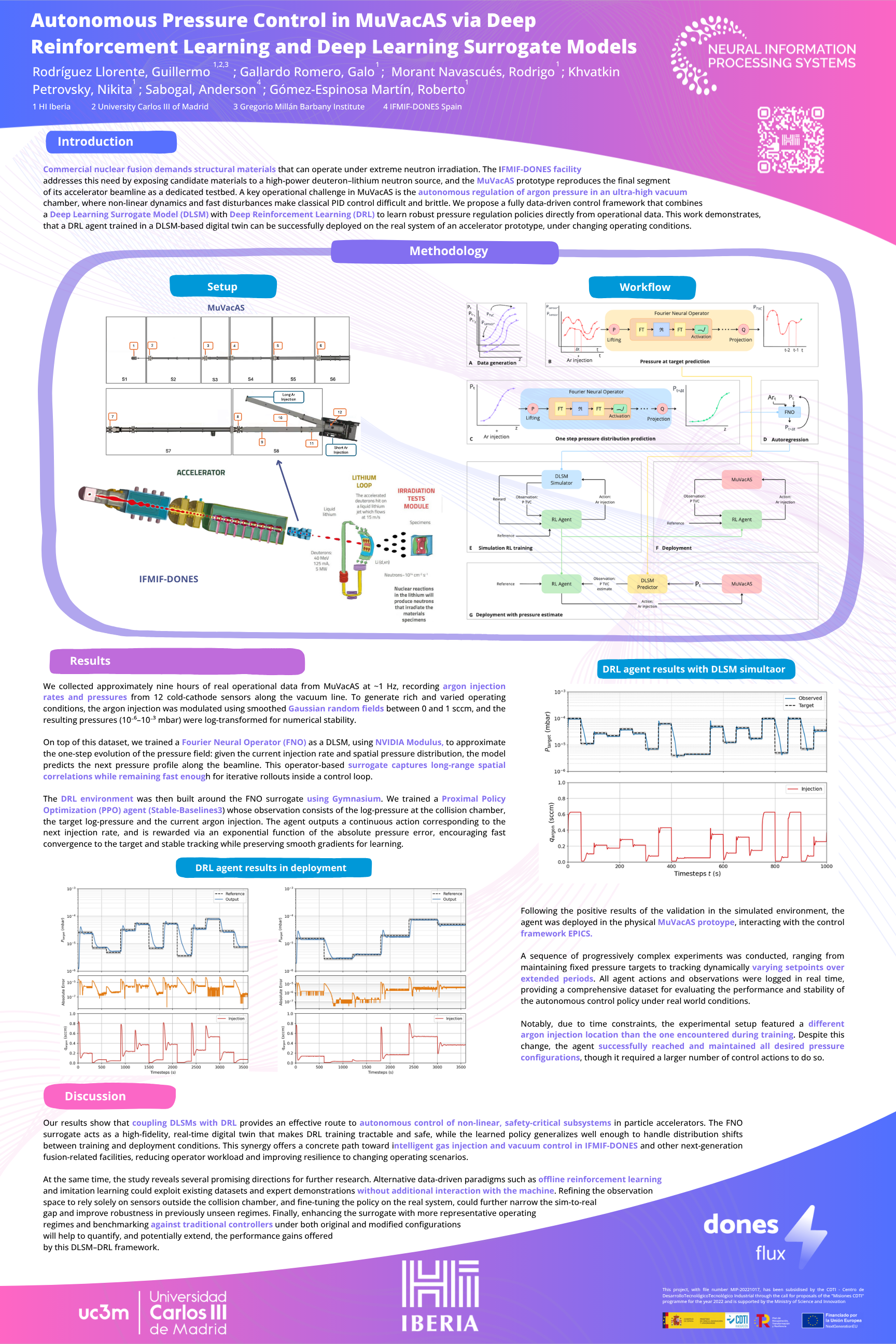 Autonomous Pressure Control in MuVacAS via Deep Reinforcement Learning and Deep Learning Surrogate Models
