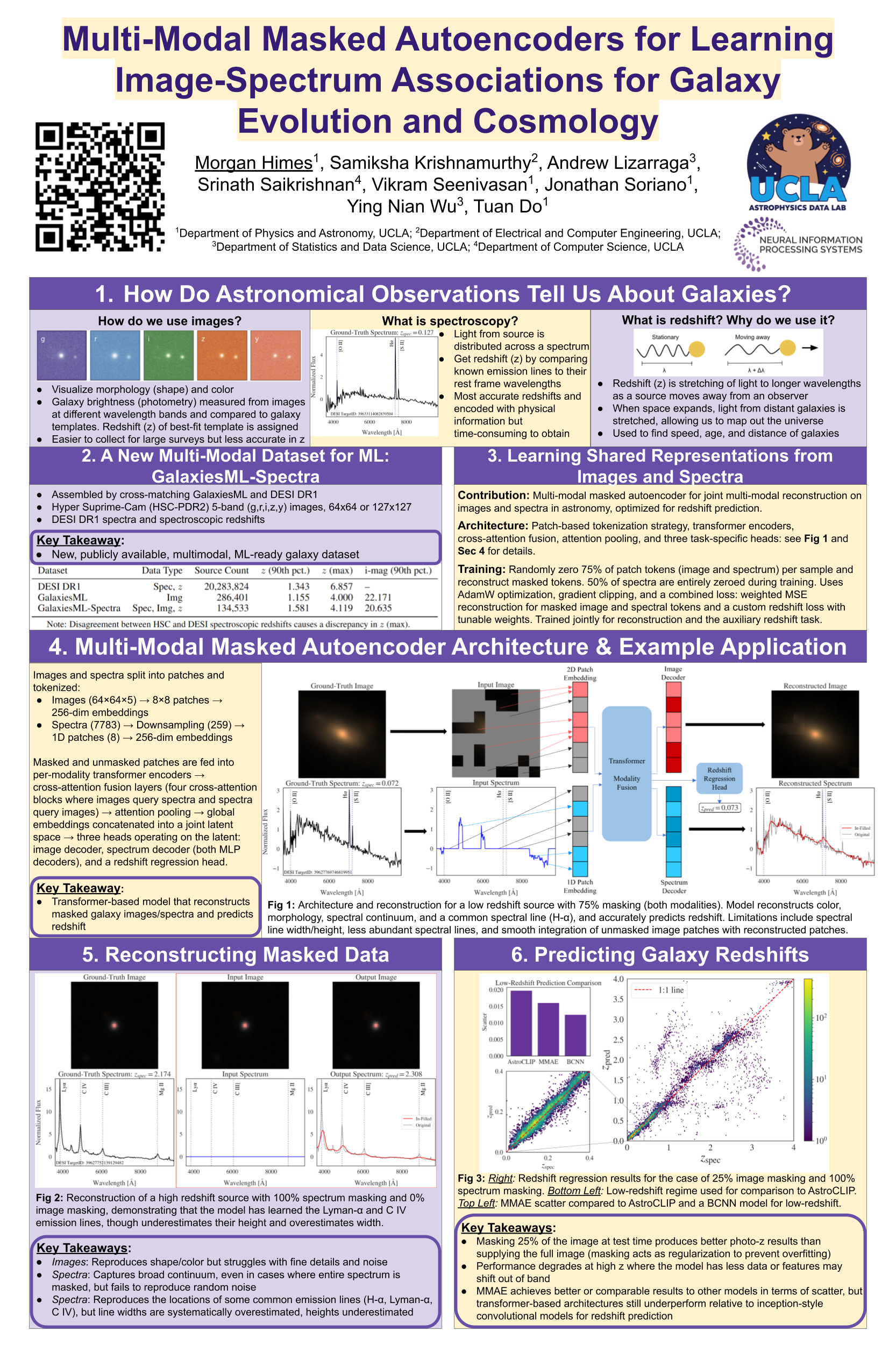 Upcoming surveys will produce billions of galaxy images but comparatively few spectra, motivating models that learn cross-modal representations. We build a dataset of 134,533 galaxy images (HSC-PDR2) and spectra (DESI-DR1) and adapt a Multi-Modal Masked Autoencoder (MMAE) to embed both images and spectra in a shared representation. The MMAE is a transformer-based architecture, which we train by masking 75% of the data and reconstructing missing image and spectral tokens. We use this model to test three applications: spectral and image reconstruction from heavily masked data and redshift regression from images alone. It recovers key physical features, such as galaxy shapes, atomic emission line peaks, and broad continuum slopes, though it struggles with fine image details and line strengths. For redshift regression, the MMAE performs comparably or better than prior multi-modal models in terms of prediction scatter even when missing spectra in testing. These results highlight both the potential and limitations of masked autoencoders in astrophysics and motivate extensions to additional modalities, such as text, for foundation models.
