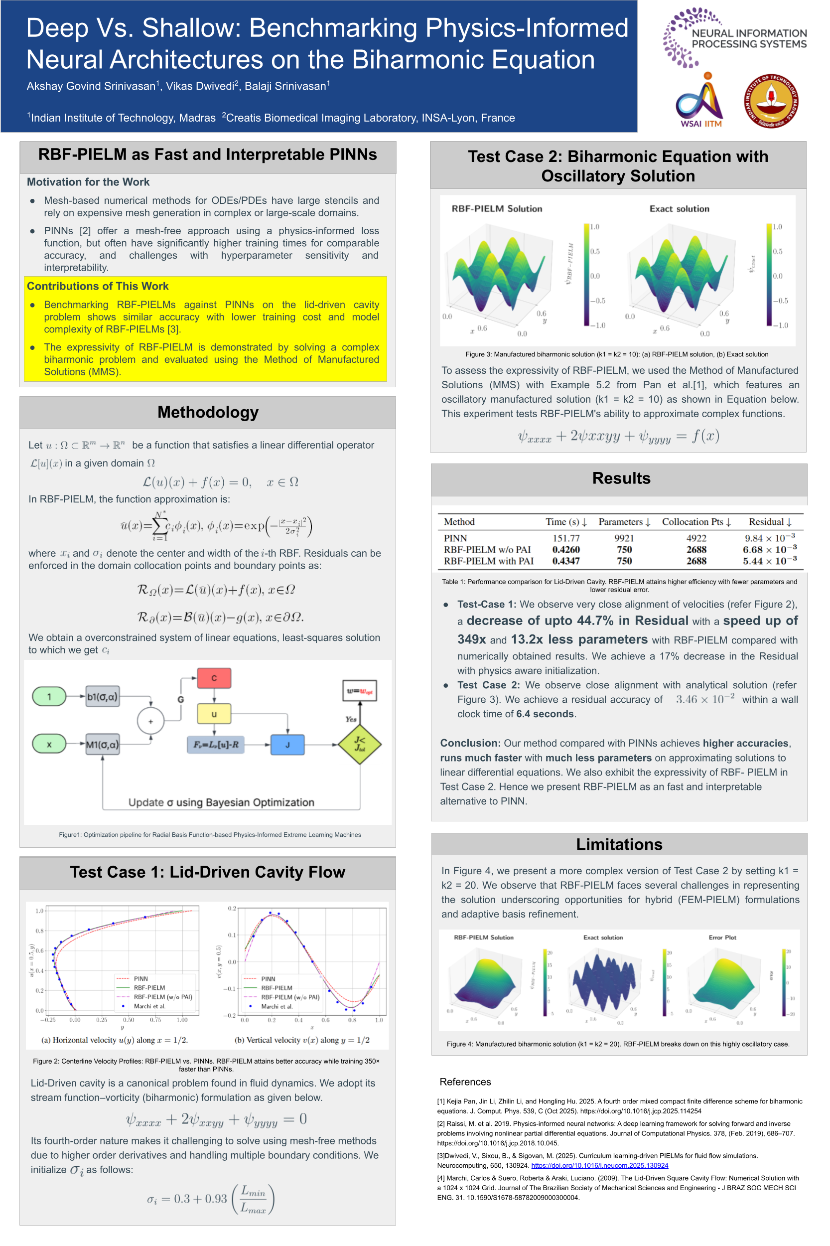 Partial differential equation (PDE) solvers are fundamental to engineering simulation. Classical mesh-based approaches (finite difference/volume/element) are fast and accurate on high-quality meshes but struggle with higher-order operators and complex, hard-to-mesh geometries. Recently developed physics-informed neural networks (PINNs) and their variants are mesh-free and flexible, yet compute-intensive and often less accurate. This paper systematically benchmarks RBF-PIELM, a rapid PINN variant—an extreme learning machine with radial-basis activations—for higher-order PDEs. RBF-PIELM replaces PINNs' time-consuming gradient descent with a single-shot least-squares solve. We test RBF-PIELM on the fourth-order biharmonic equation using two benchmarks: lid-driven cavity flow (streamfunction formulation) and a manufactured oscillatory solution. Our results show up to $(350\times)$ faster training than PINNs and over $(10\times)$ fewer parameters for comparable solution accuracy. Despite surpassing PINNs, RBF-PIELM still lags mature mesh-based solvers and its accuracy degrades on highly oscillatory solutions, highlighting remaining challenges for practical deployment.