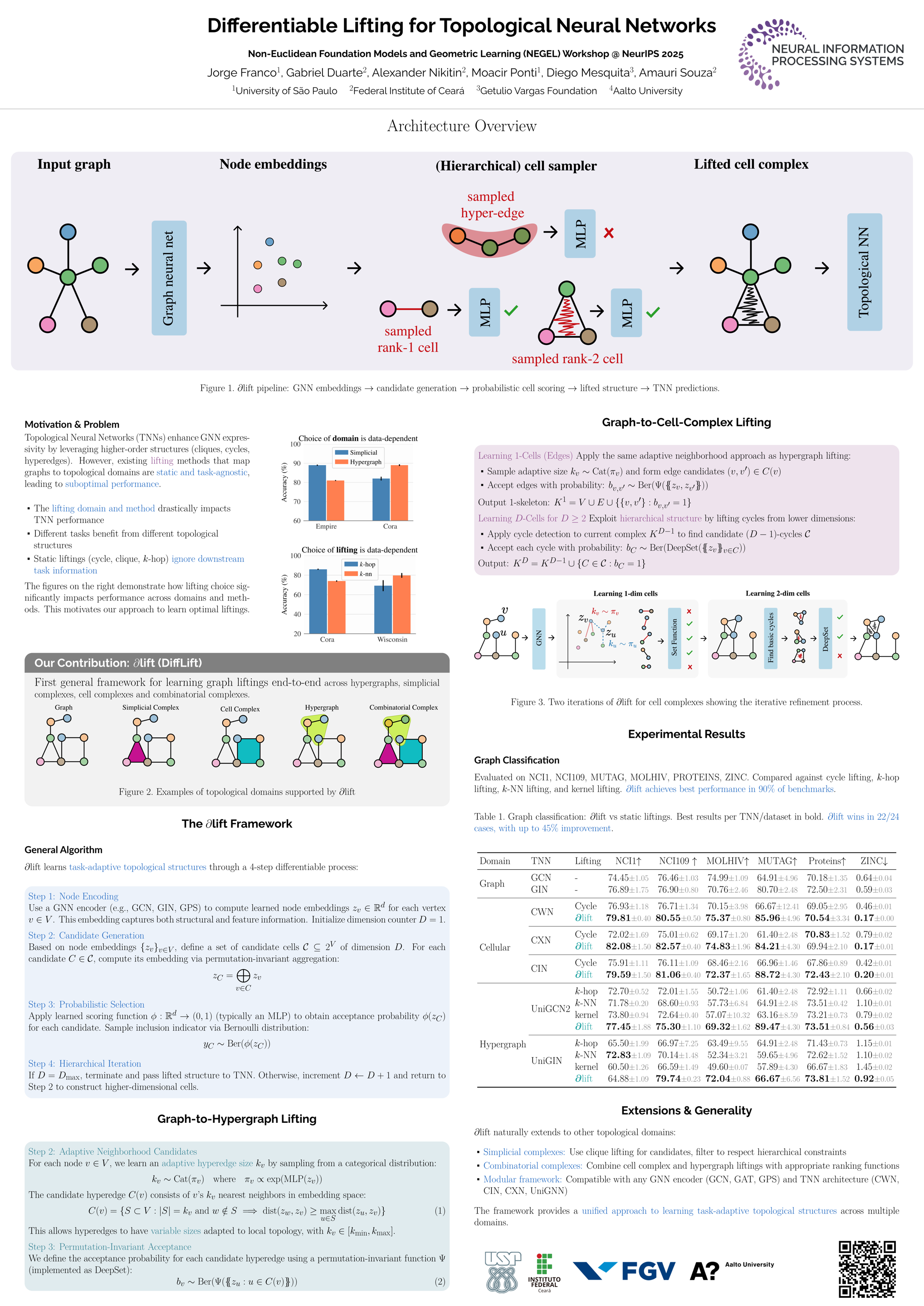 Differentiable Lifting for Topological Neural Networks
