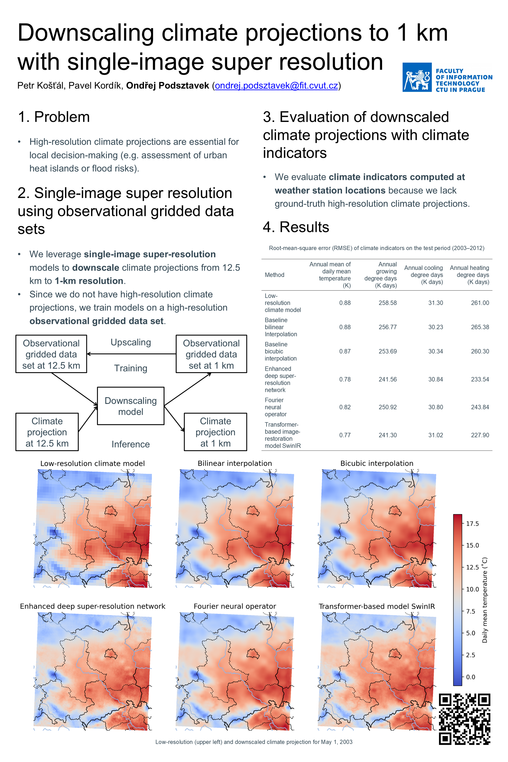 High-resolution climate projections are essential for local decision-making. However, available climate projections have low spatial resolution (e.g. 12.5 km), which limits their usability. We address this limitation by leveraging single-image super-resolution models to statistically downscale climate projections to 1-km resolution. Since high-resolution climate projections are unavailable for training, we train models on a high-resolution observational gridded data set and apply them to low-resolution climate projections. We propose a climate indicator-based assessment using observed climate indices computed at weather station locations to evaluate the downscaled climate projections without ground-truth high-resolution climate projections. Experiments on daily mean temperature demonstrate that single-image super-resolution models can downscale climate projections without increasing the error of climate indicators compared to low-resolution climate projections.
