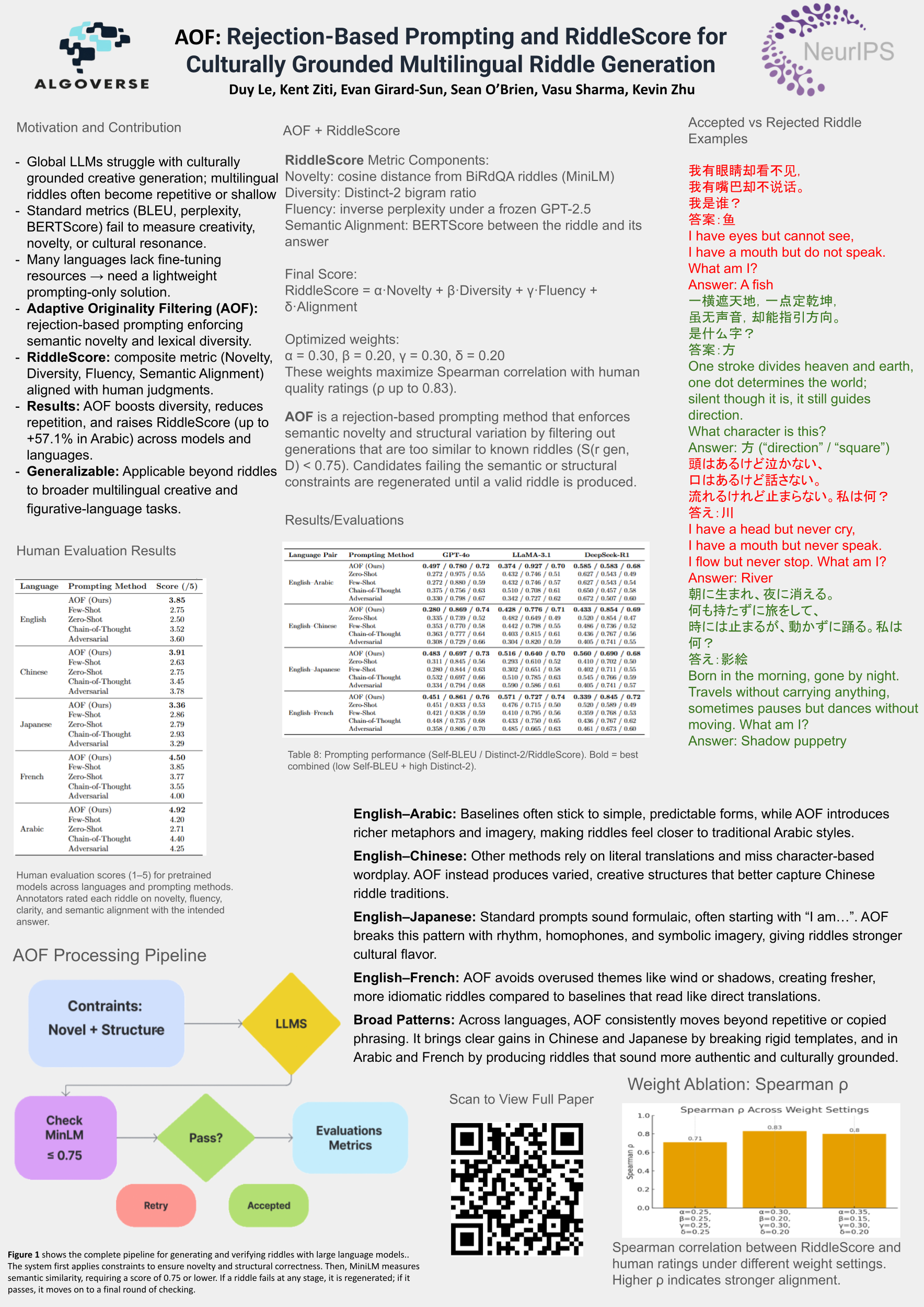 Adaptive Originality Filtering: Rejection‑Based Prompting and RiddleScore for Culturally Grounded Multilingual Riddle Generation