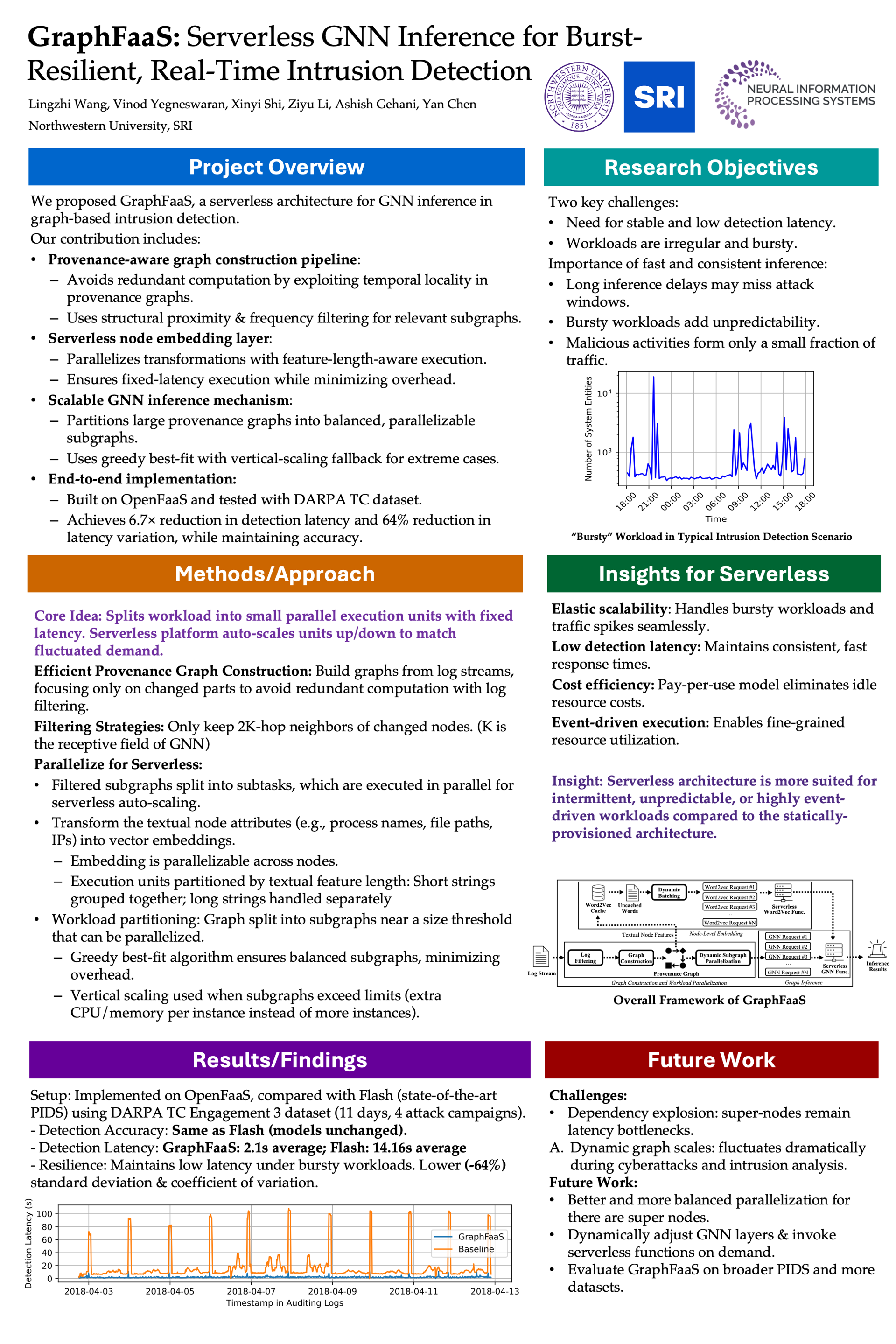 Provenance-based intrusion detection is an increasingly popular application of graphical machine learning in cybersecurity. where system activities are modeled as provenance graphs to capture causality and correlations among potentially malicious actions. Graph Neural Networks (GNNs) have demonstrated strong performance in this setting. However, traditional statically-provisioned GNN5inference architectures fall short in meeting two crucial demands of intrusion detection: (1) maintaining consistently low detection latency, and (2) handling highly irregular and bursty workloads. To holistically address these challenges, we present GraphFaaS, a serverless architecture tailored for GNN-based intrusion detection. GraphFaaS leverages the elasticity and agility of serverless computing to dynamically scale the GNN inference pipeline. We parallelize and adapt GNN workflows to a serverless environment, ensuring that the system can respond in real time to fluctuating workloads. By decoupling compute resources from static provisioning, GraphFaaS delivers stable inference latency, which is critical for dependable intrusion detection and timely incident response in cybersecurity operations. Preliminary evaluation shows GraphFaaS reduces average detection latency by 85% and coefficient of variation (CV) by 64% compared to the baseline.