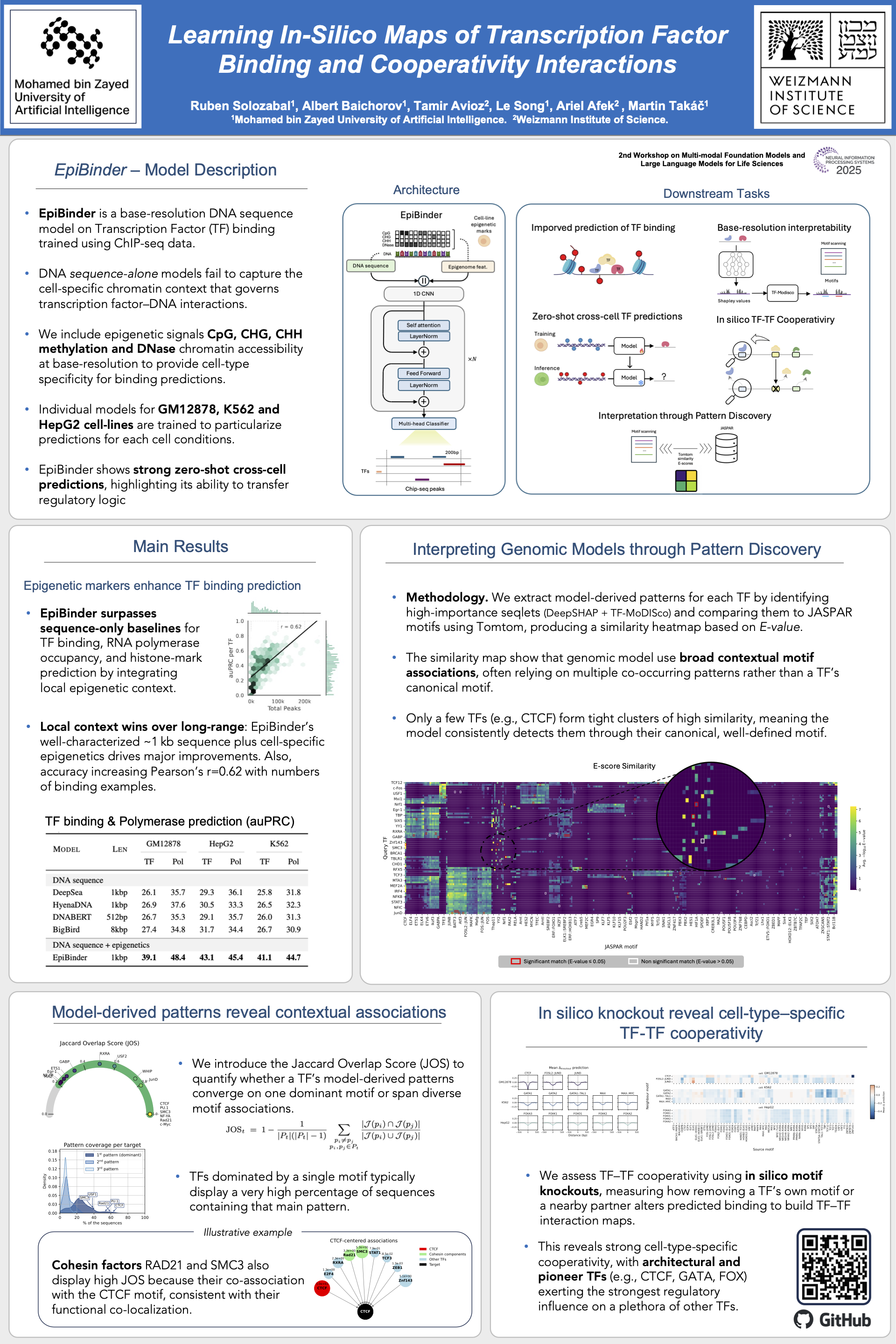 Genomic deep learning has rapidly advanced the prediction of transcription factor (TF) binding and other genomic profiles directly from DNA sequence, yet the biological mechanisms captured by these models remain largely unexplored. In this work, we investigate how state-of-the-art genomic models encode the regulatory logic underlying TF binding. We first systematically analyze the model-derived patterns for each TF, revealing that models frequently rely on broad contextual co-associations of motifs to predict a TF to bind. To quantify the dispersity of this association, we introduce the \textit{Jaccard Overlap Score (JOS)}, which distinguishes concentrated recognition of canonical motifs from more distributed binding signatures. Next, we investigate TF--TF cooperativity through \textit{in silico} knockout experiments, revealing pronounced self-dependence of key regulators and cell-type--specific cooperative grammars. Together, our results provide a mechanistic interpretation of genomic deep learning models, demonstrating both their ability to capture biologically meaningful combinatorial regulation and their reliance on contextual sequence features. Our code is publicly available at https://github.com/AlbertBay/EpiBinder.