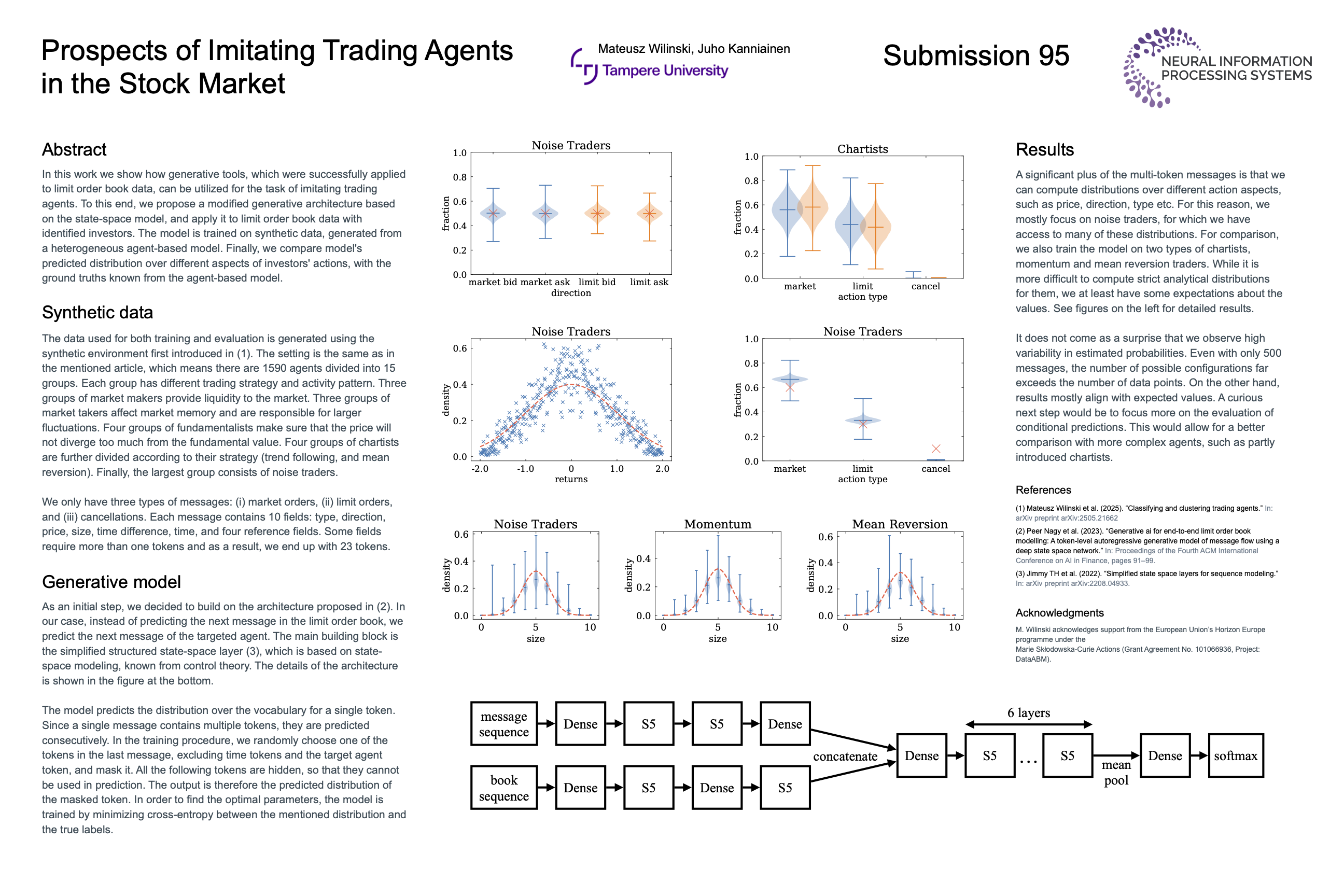 In this work we show how generative tools, which were successfully applied to limit order book data, can be utilized for the task of imitating trading agents. To this end, we propose a modified generative architecture based on the state-space model, and apply it to limit order book data with identified investors. The model is trained on synthetic data, generated from a heterogeneous agent-based model. Finally, we compare model's predicted distribution over different aspects of investors' actions, with the ground truths known from the agent-based model.