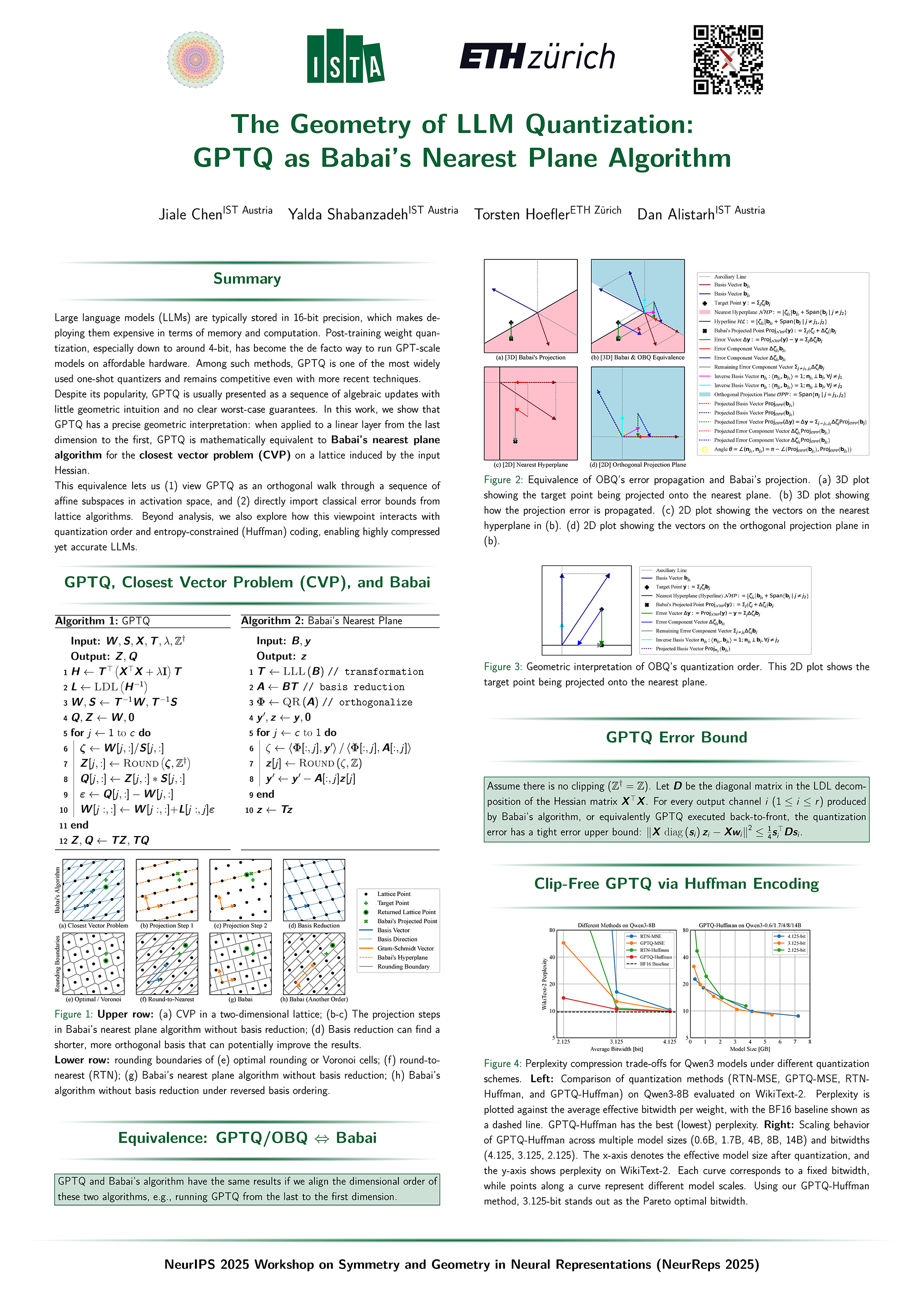 Quantizing the weights of large language models (LLMs) from 16-bit to lower bitwidth is the de facto approach to deploy massive transformers onto more affordable accelerators. GPTQ emerged as one of the standard methods for one-shot post-training quantization at LLM scale. Yet, its inner workings are described as a sequence of ad-hoc algebraic updates that obscure any geometric meaning or worst-case guarantees. In this work, we show that, when executed back-to-front (from the last to first dimension) for a linear layer, GPTQ is mathematically identical to Babai's nearest plane algorithm for the classical closest vector problem (CVP) on a lattice defined by the Hessian matrix of the layer's inputs. This equivalence is based on a sophisticated mathematical argument, and has two analytical consequences: (i) the GPTQ error propagation step gains an intuitive geometric interpretation; (ii) GPTQ inherits the error upper bound of Babai's algorithm under the no-clipping condition. Taken together, these results place GPTQ on a firm theoretical footing and open the door to importing decades of progress in lattice algorithms towards the design of future quantization algorithms for billion-parameter models.